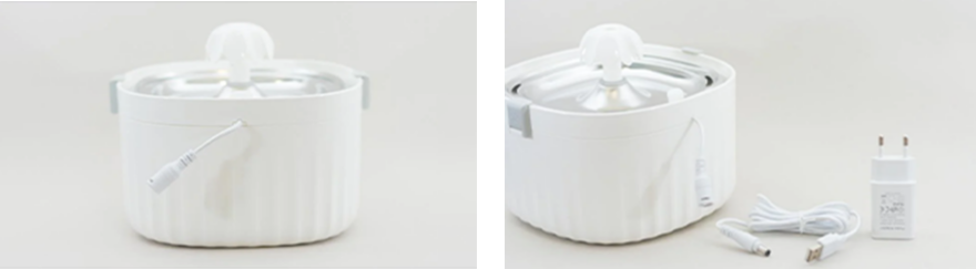The pet fountain is conveniently powered by a tail that features a round DC-DC connector. The power circuit includes a standard connector, an intermediate wire with a USB connector, and a 5V1A network adapter. The total length of the wire, which is covered in a durable rag braid, is 1.5 meters. This design ensures that pet owners can easily place the fountain anywhere in their homes without having to worry about the distance from the power source.